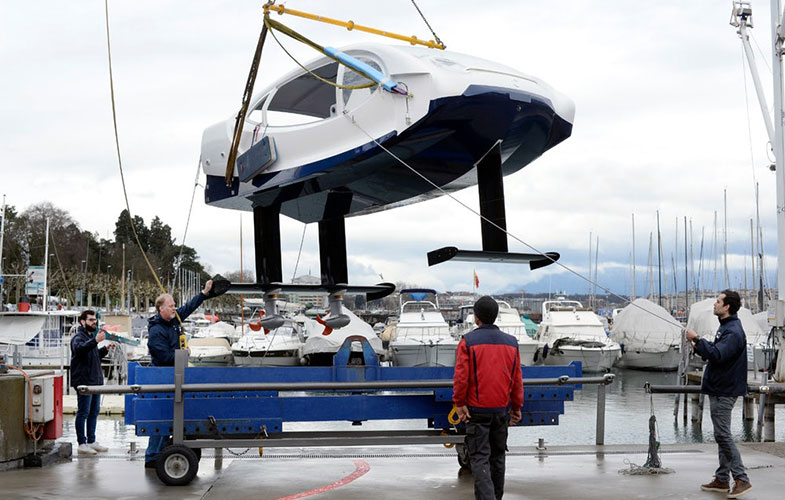قایق هایی که برروی آب حرکت می کنند، به علت تکان های شدید مناسب سفرهای طولانی مدت نیستند، اما تولید یک تاکسی دریایی برقی که با فاصله از آب حرکت می کند، مشکل مذکور را حل می کند.